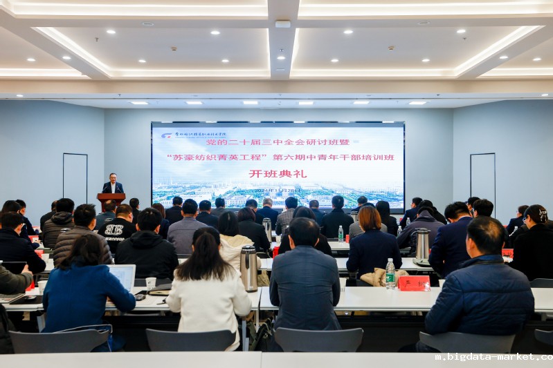 为深入推进人才强企战略,引导干部坚定理想信念,提升干部综合素养。11月28日上午,江苏苏豪纺织集团有限公司党的二十届三中全会研讨班暨“苏豪纺织菁英工程”第六期中青年干部培训班在我校领秀报告厅开班。江苏苏豪纺织集团有限公司党委班子成员和全体中层干部,学校党委书记吴访升、党委副书记王顺明、党委委员、副院长张文明、马昀和相关职能部门参加开班典礼。会议由马昀主持。