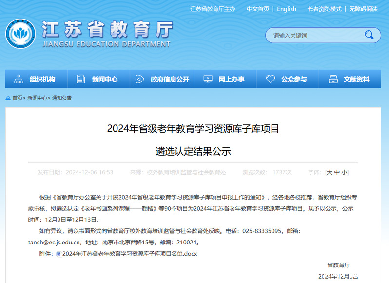 2024年江苏省老年教育学习资源库子库项目名单